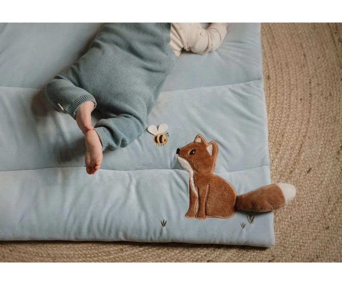 Esta manta acolchada está llena de texturas y características que estimularán sus sentidos. Hecho para horas de entretenimiento los peques encontrarán hojas crujientes, suaves nubes, un zorro muy suave, un búho y un escarabajo.