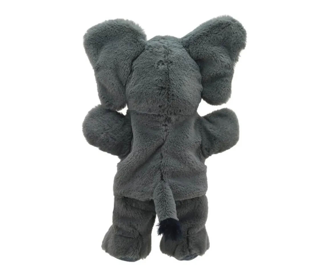 Fabricado con materiales reciclados como parte de nuestro compromiso con la sostenibilidad, este elefante es suave y duradero, con un acabado de alta calidad que asegura horas de juego seguro y cómodo. Esta colección ecológica complementa perfectamente nuestras otras marionetas y peluches, destacando por su fantástica atención al detalle.