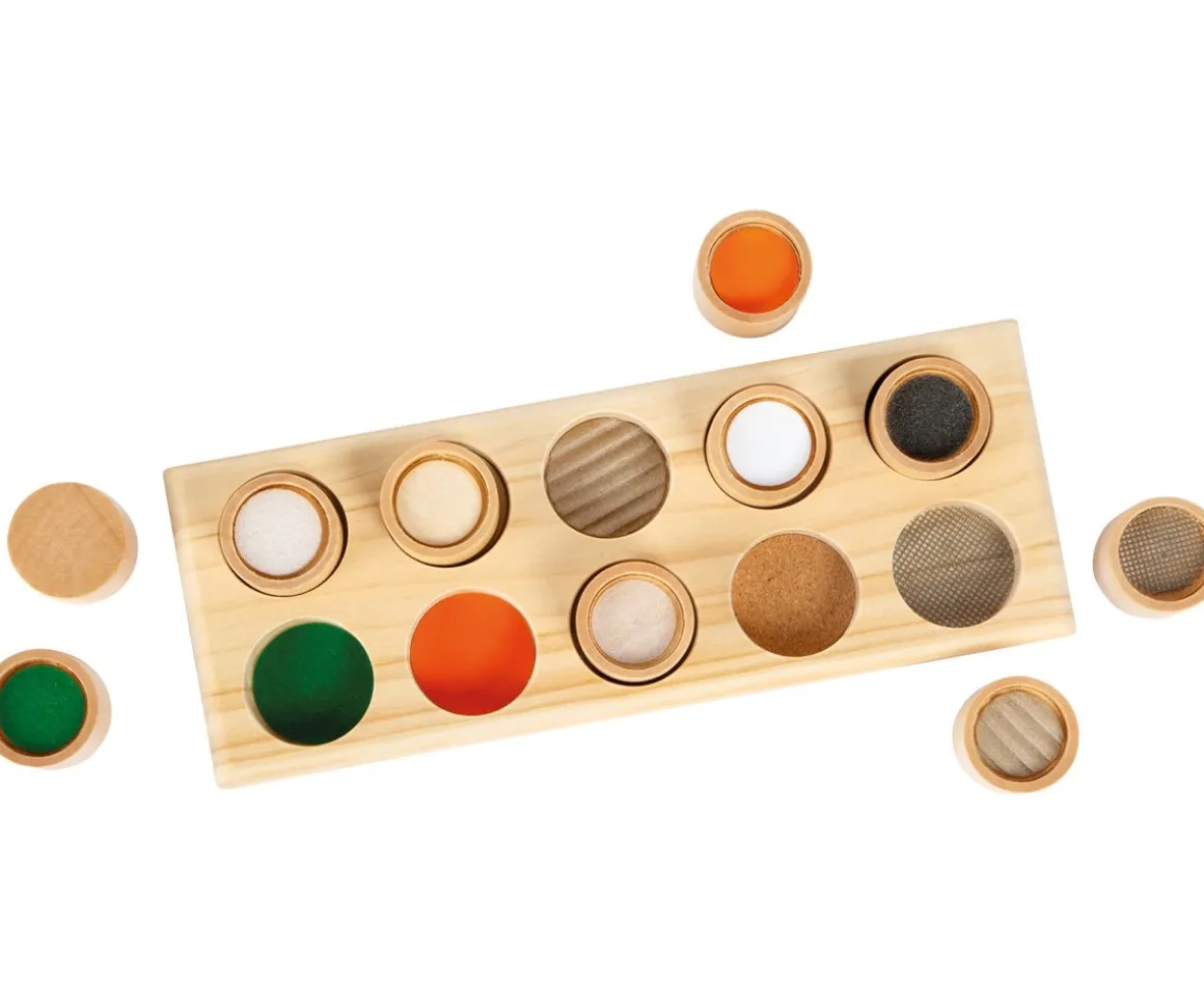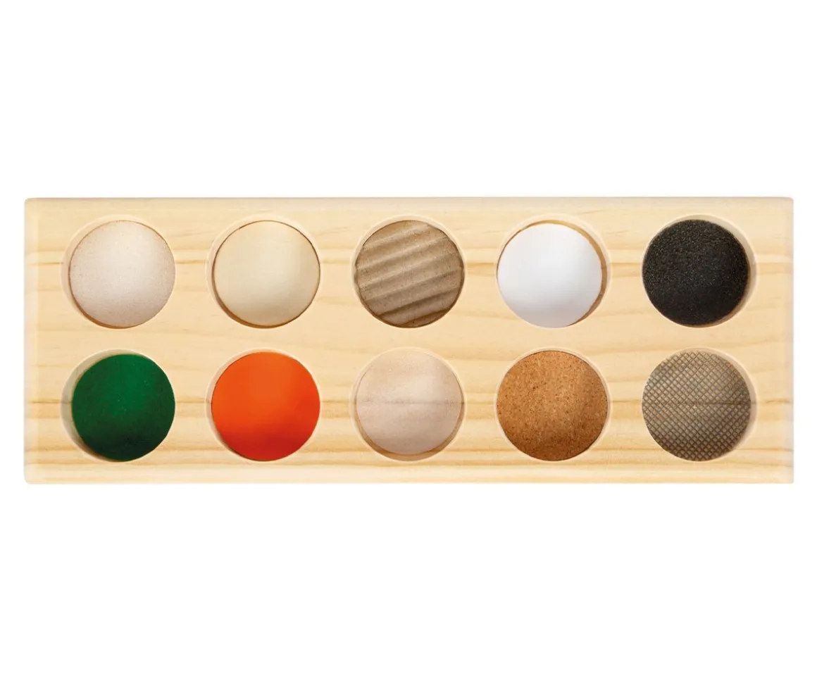 - Incluye: tablero de madera con 10 piezas con colores y texturas diferentes