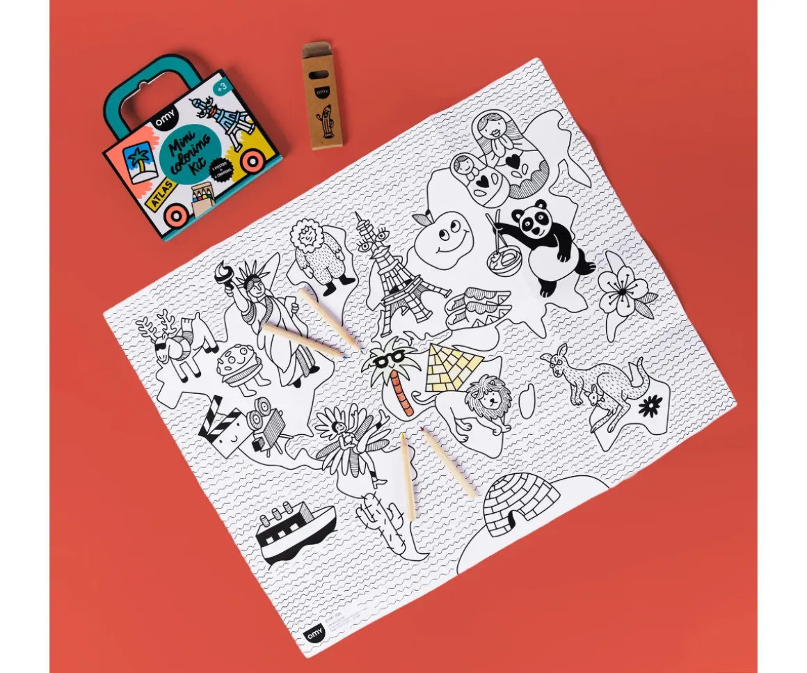 Este mini kit para colorear es súper práctico y fácil de llevar a todas partes gracias a su pequeña asa. Es el compañero ideal para las aventuras de los peques: de viaje, en el transporte público, en restaurantes o guardado en una maleta. Dentro encontrarán 4 mini lápices de cera e ilustraciones grandes, especialmente diseñadas para niños de 3 a 7 años. ¡Así podrán colorear, guardar sus lápices y llevar su estuche ellos mismos!