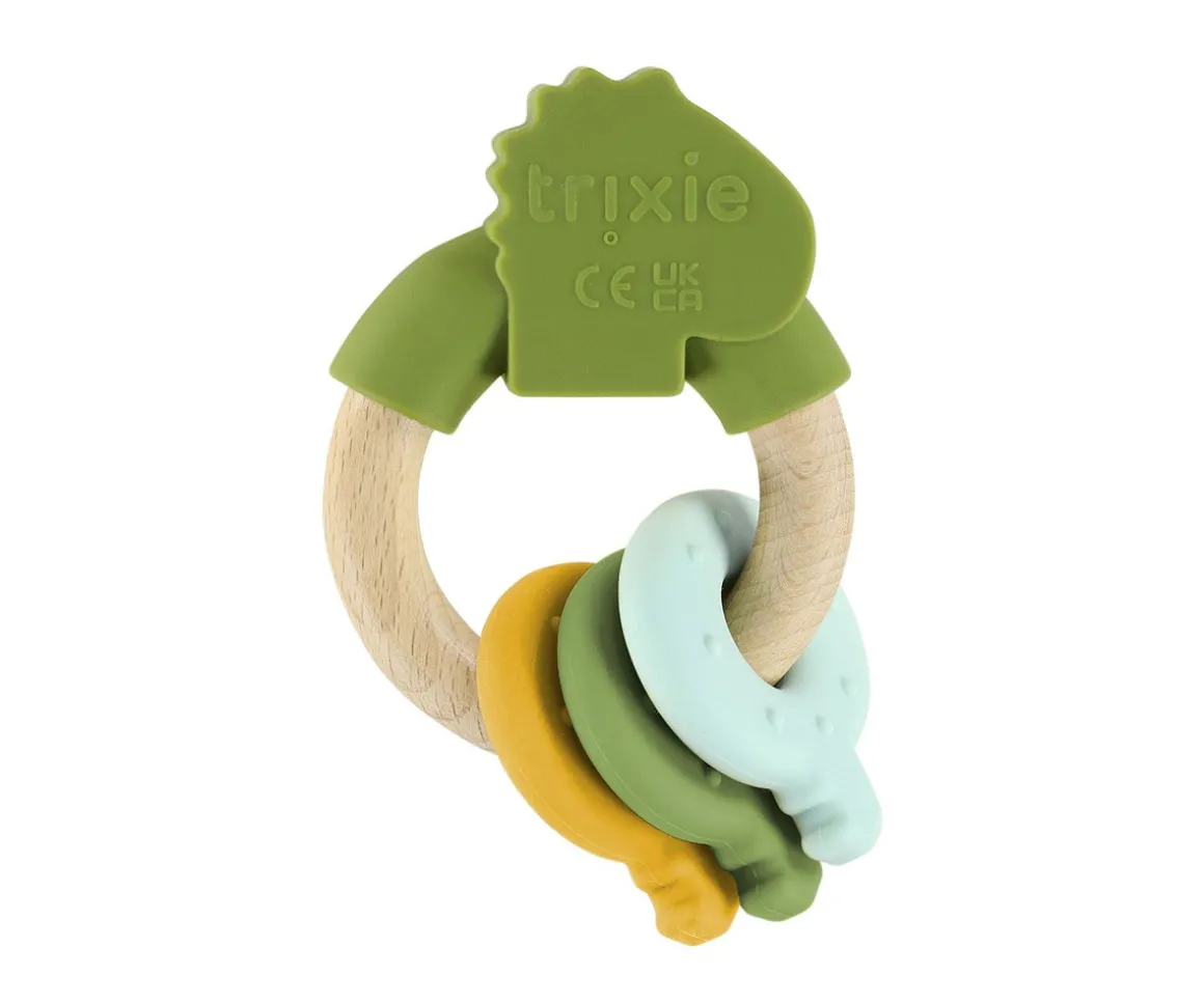 Este anilla de actividades con llaves de silicona de Tixie está diseñado para bebés desde 0 meses en adelante, perfecto para estimular la motricidad fina y calmar las molestias durante el proceso de dentición.