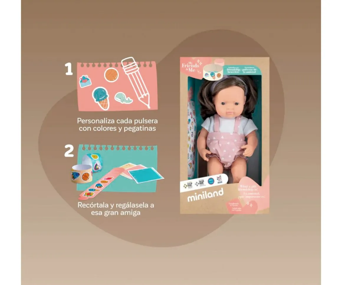 Este muñeco pertenece a la colección My Friends & Me de Miniland se distingue por su compromiso con la diversidad y la tolerancia, enseñando a los niños a valorar y respetar las diferencias.