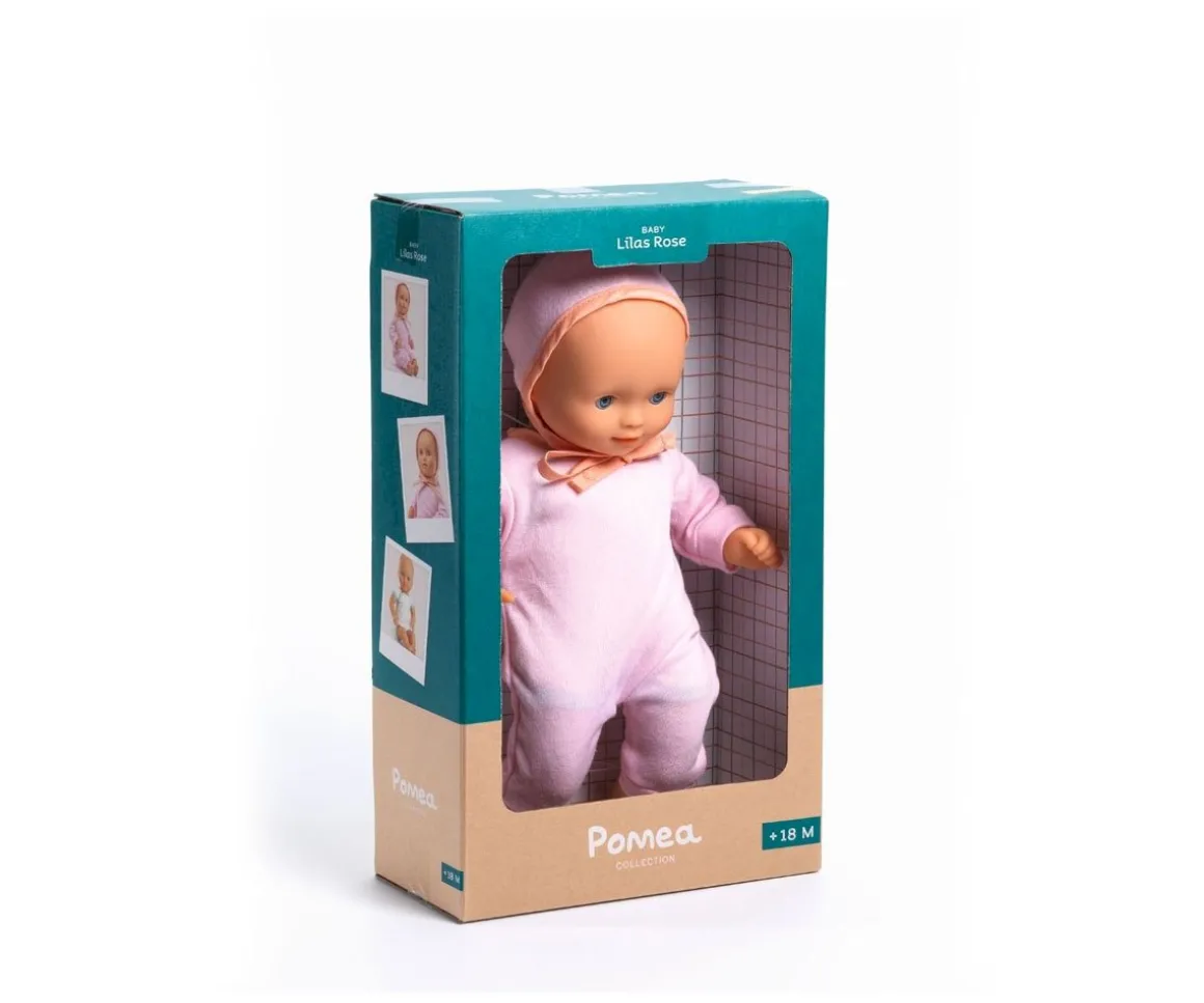 Con unos preciosos ojos marrones Baby Lilas Rose es una muñeca para niños a partir de 18 meses. Su cuerpo flexible, estampado con un body, permite colocarlo como un bebé deverdad.