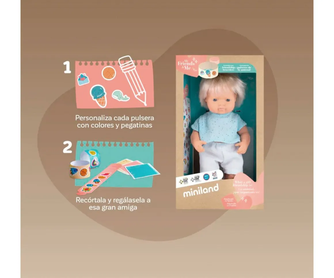Este muñeco pertenece a la colección My Friends & Me de Miniland se distingue por su compromiso con la diversidad y la tolerancia, enseñando a los niños a valorar y respetar las diferencias.