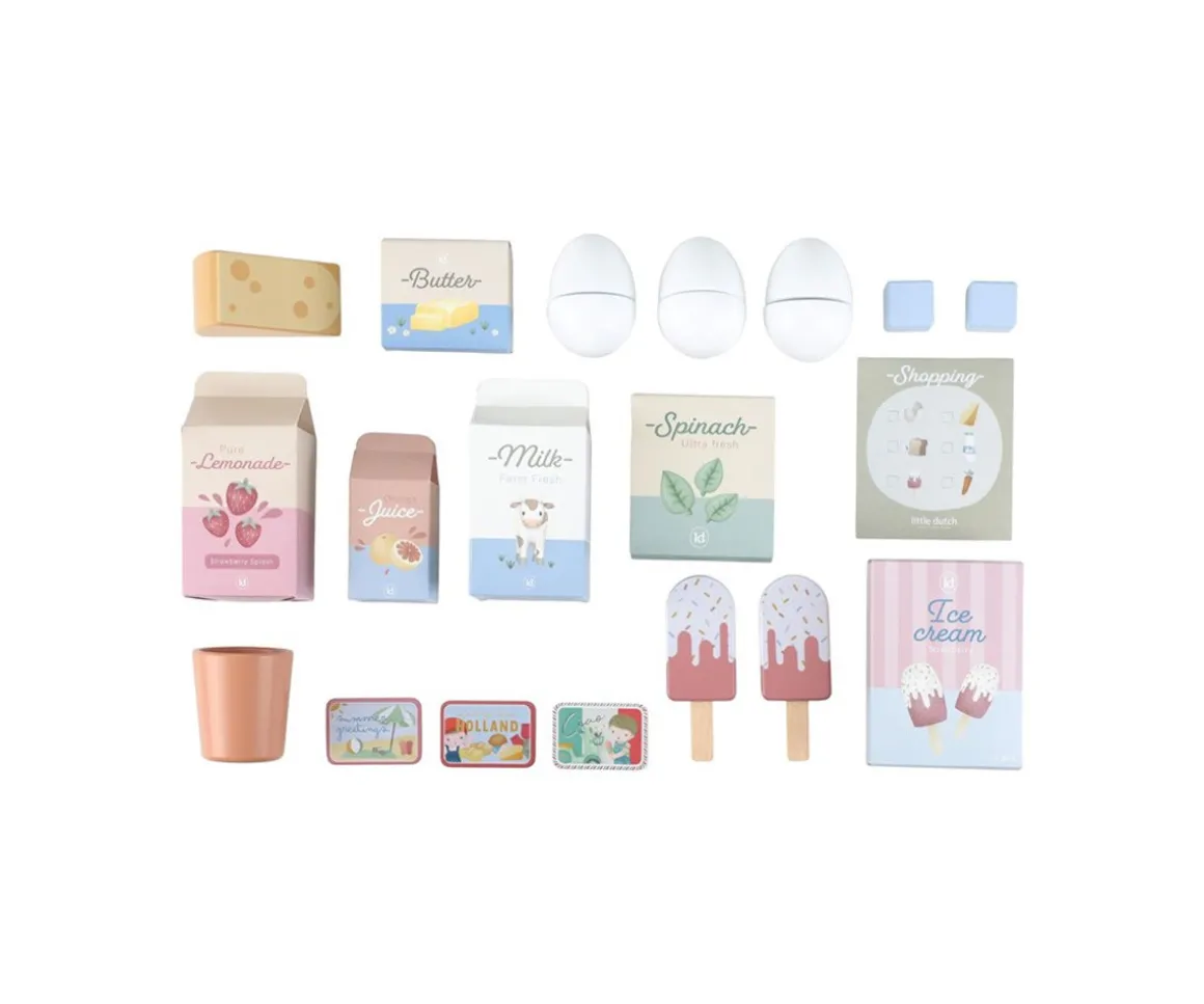 ¡Mantén los alimentos siempre frescos y da un toque realista al juego de cocina con este precioso frigorífico de madera de Little Dutch!