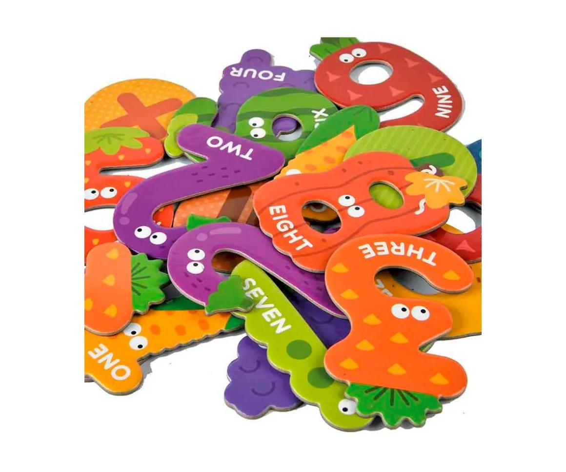 El set de números magnéticos MiDeer simulan diferentes frutas y verduras y es ideal para acercar a los peques al reconocimiento de los números, de frutas y verduras, así como al inglés, pues cada número va nombrado con su respectiva palabra en inglés.