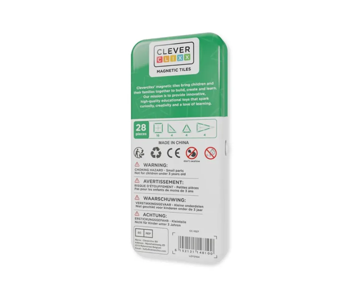 El set Mini Tiles Pack de Cleverclixx incluye 28 piezas magnéticas en un práctico formato mini, ideal para pequeñas manos y grandes ideas. Diseñado para peques a partir de 3 años, este pack fomenta el juego libre, el desarrollo de habilidades STEAM y la creatividad, ¡estés donde estés!