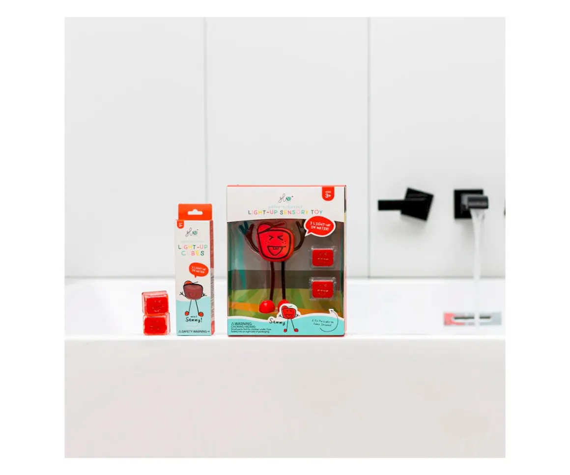 Pal Sammy es un personaje rojo muy divertido que viene acompañado de dos cubos iluminados reutilizables. Los brazos de Pal son flexibles, y puedes insertar los cubos en la parte posterior de Pal, y ver cómo se ilumina en el agua.