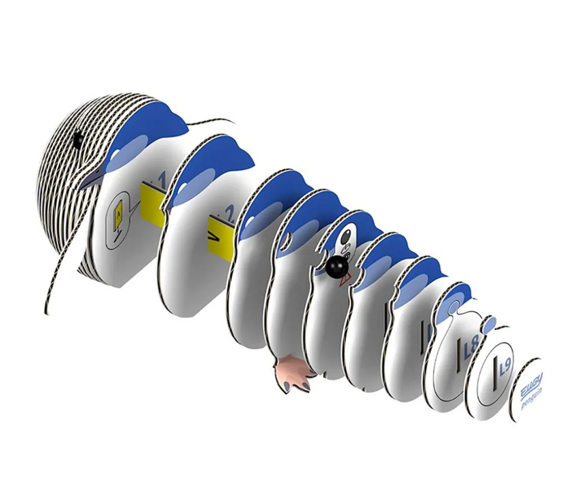 - Material: cartón corrugado, tinta ecológica y no tóxica, pegamento no tóxico soluble en agua y biodegradable