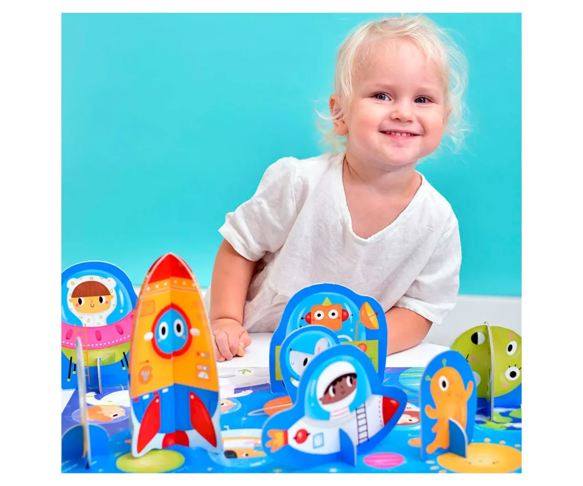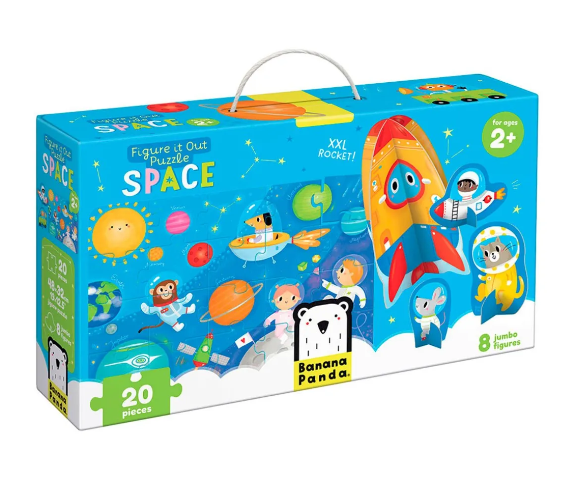 Este puzzle es estupendo para los amantes del espacio. Los peques descubrirán los divertidos personajes y aprenderán sobre el Sistema Solar.