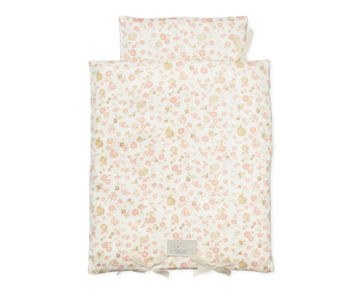 Incluye un edredón y una almohada suaves y delicados, ideales para los momentos de juego y cuidado de los más pequeños.