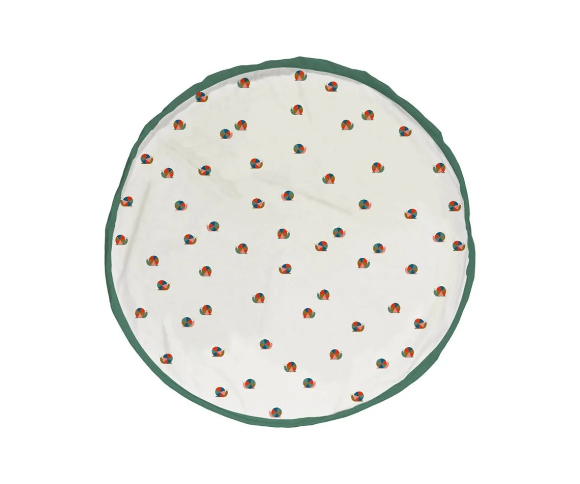 Este saco se desdobla y se convierte en una manta de juegos donde el niño puede jugar con todas sus juguetes, grandes y pequeños, y cuando llega la hora de acostarse, sólo hay que cerrarla y ya está todo recogido.