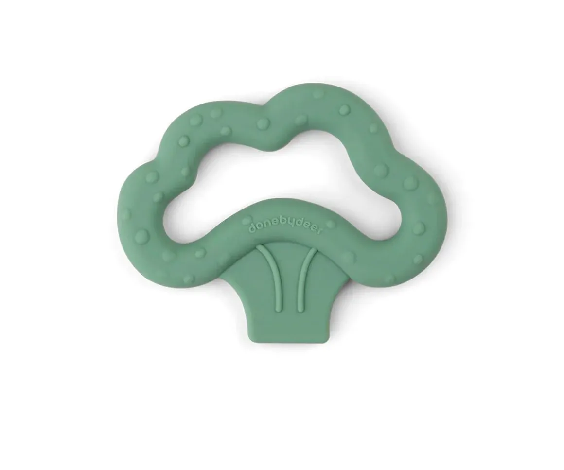 El sonajero chirriador de Croco emite sonidos divertidos, la zanahoria con hojitas es estupenda para desarrollar las habilidades motoras y el mordedor con forma de brócoli calmará las encías de los peques.