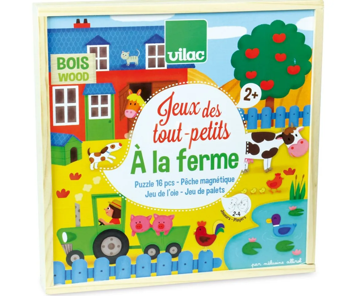 - Contiene un puzzle de 16 piezas, un juego de pesca magnética, un juego de pista y un juego de tejos