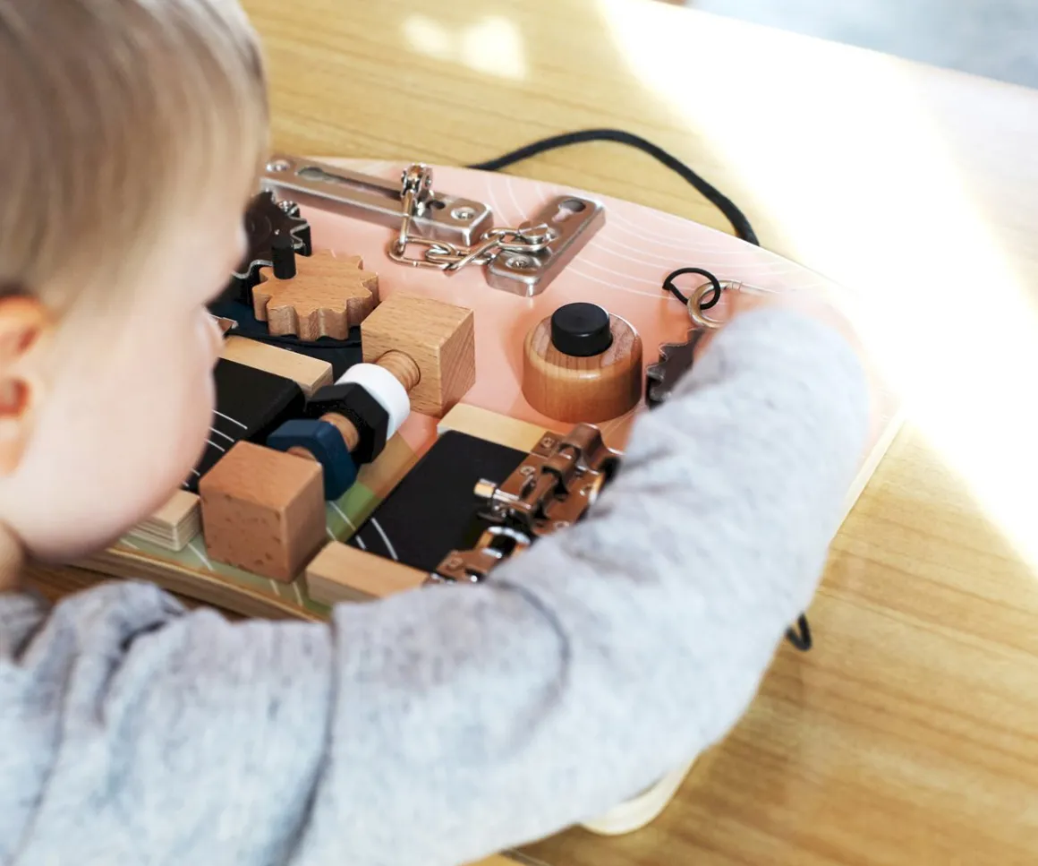 - Actividades Contiene: mosquetón con lazo, pestillo de cadena de puerta, carrete, cerrojo, cerradura de pecho, cerradura con llave, juego de ruedas dentadas y bocina