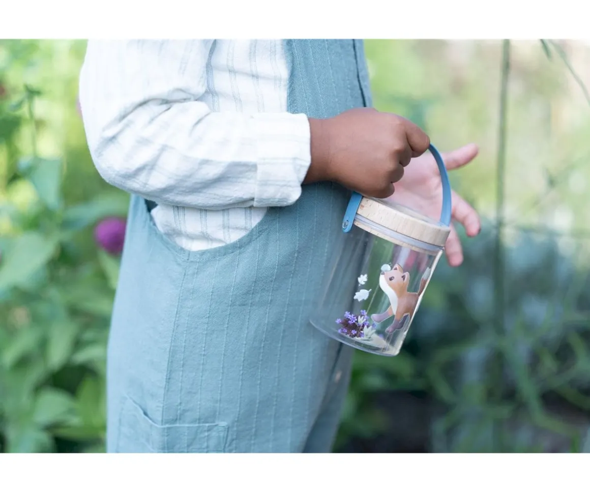 Un tarro con tapa de madera, equipada con una lupa, te permite ver los detalles más pequeños con claridad. La tapa se puede quitar fácilmente y el plástico transparente te permite ver los insectos,plantas, hojad y otras muestras desde todos los lados.El tarro cuenta con orificios de ventilación.