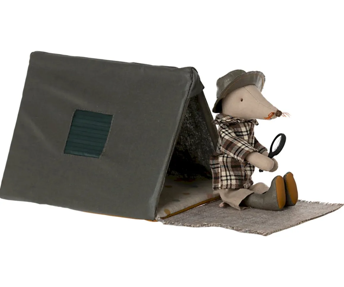 A tus ratones exploradores no les puede faltar este accesorio ideal para escapadas al aire libre, una tienda de campaña plegable individual tamaño ratón. Además incluye una mantita para poder abrigarse si refresca por las noches.
