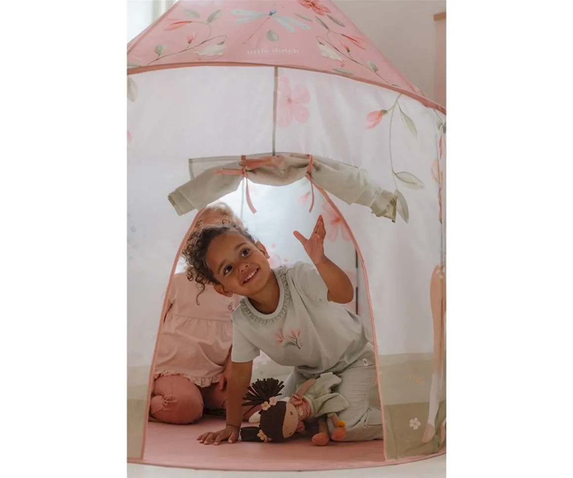 Tienda para jugar perfecta para la habitación infantil o para juegos en el jardín. Los pequeños tendrán horas de diversión entrando y saliendo de su castillo. Además, la cortina se enrolla dejando una puerta más amplia.