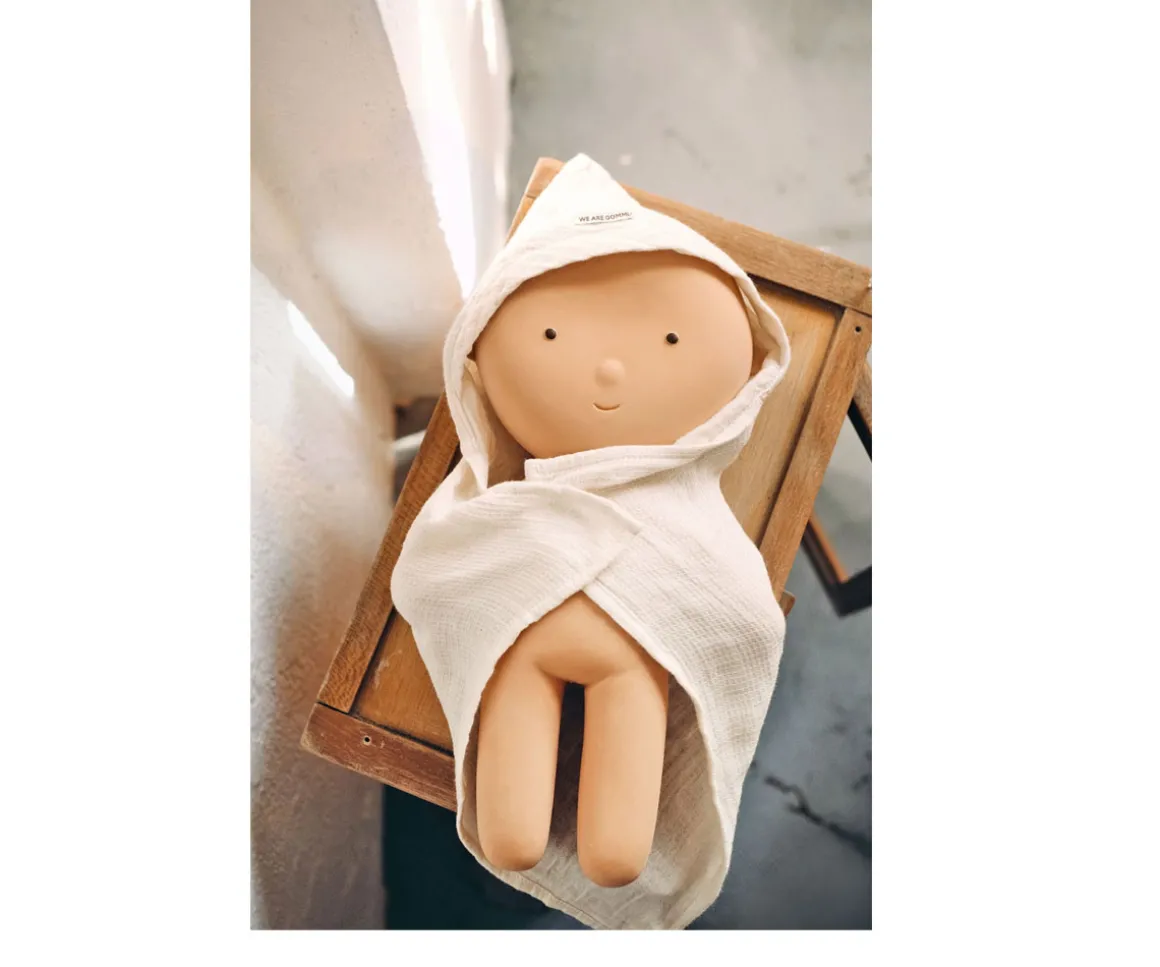 Esta toalla está diseñada en un tamaño perfecto para envolver a tu muñeca Gommu, ofreciendo un tacto delicado y absorbente. Es el complemento perfecto para fomentar el juego de imitación y enseñar a los niños las rutinas de higiene y cuidado personal.