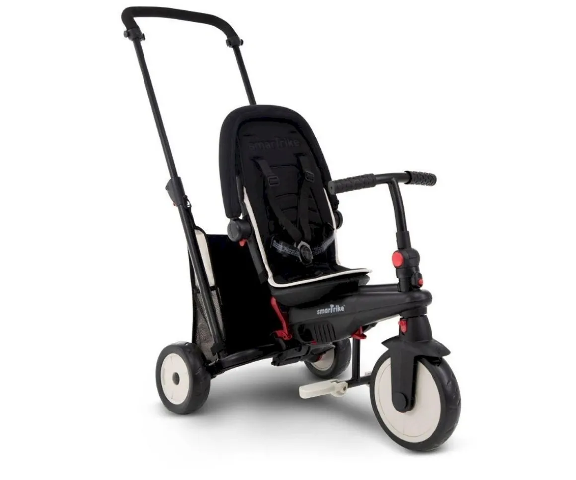 Cuando tu peque quiera un triciclo independiente quita el reposapiés y coloca los pedales y… ¡listo! Lo puedes cerrar con los pedales puestos o semicerrarlo y arrastrarlo con las ruedas traseras para cuando el peque se canse.