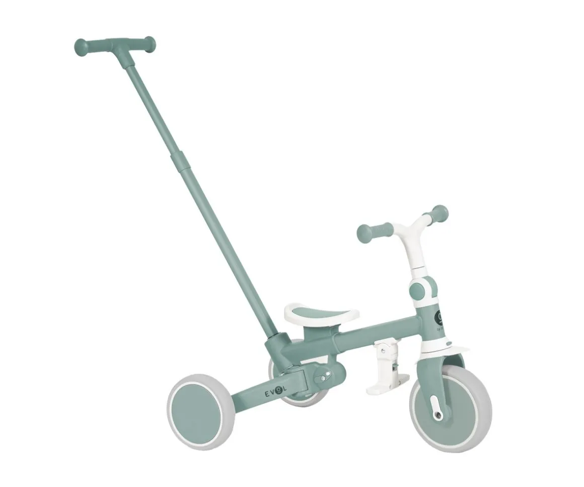Este triciclo se irá transformando y adaptando a medida que el niño o niña crece. De triciclo a bicicleta con o sin pedales, pasando por todos los modelos necesarios para la adaptación del niño. Es adecuado a partir de los 12 meses y viene con una barra de empuje extraíble que se puede colocar en la parte posterior del triciclo para ayudar que el peque comience de manera más segura.