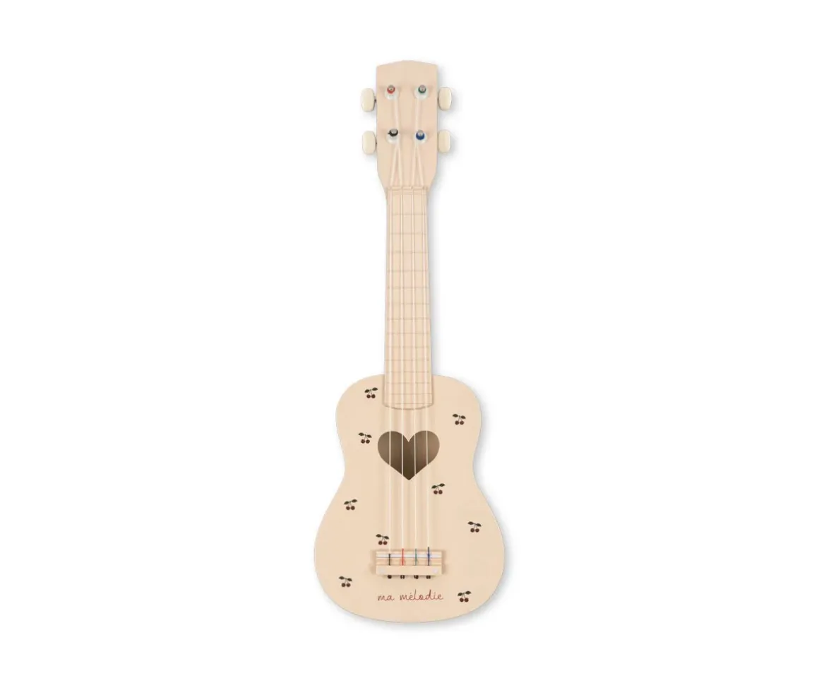 Este juguete musical de madera es ideal para desarrollar la sensibilidad musical, la creatividad y la motricidad fina. Con 4 cuerdas de nailon, ofrece un alegre sonido perfecto para la iniciación musical.