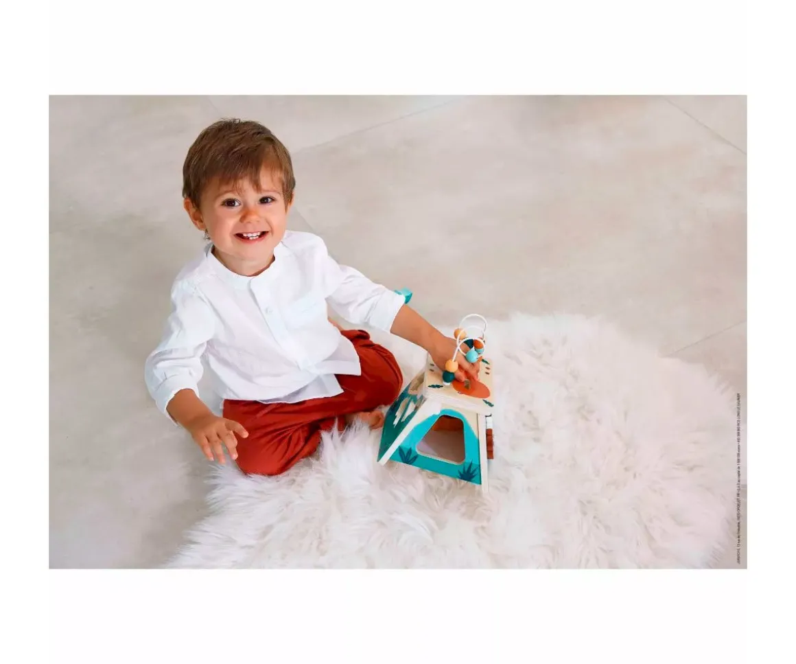 - Incluye: espejo, engranajes, laberinto con 8 cuentas de madera, 3 dinosaurios encajables y muchas más actividades