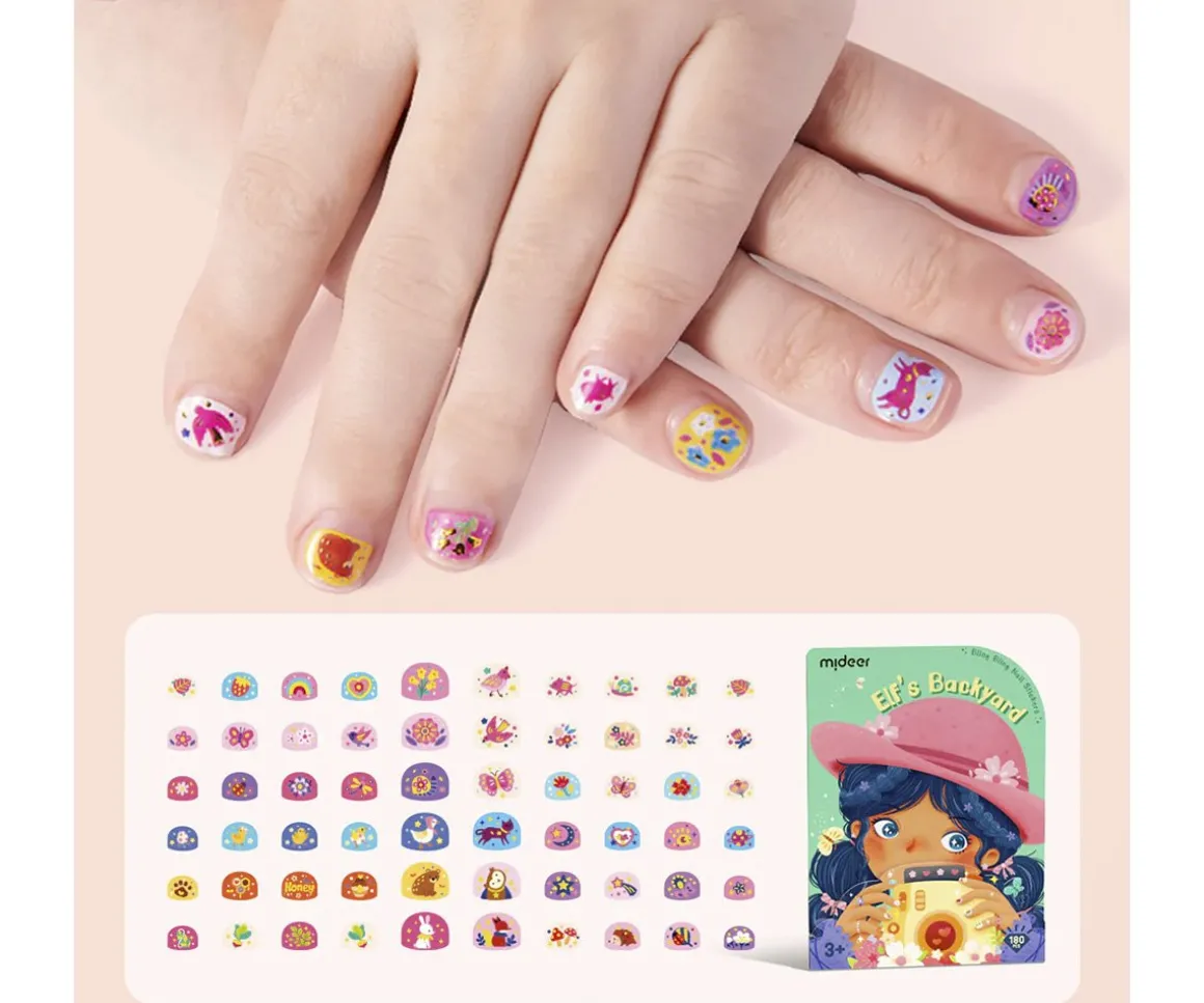 Set de 180 pegatinas para uñas con divertidos y originales dibujos a color de animales y fantasía, perfecto para darle un toque divertido a las manos de los peques. Fáciles de aplicar y de retirar.