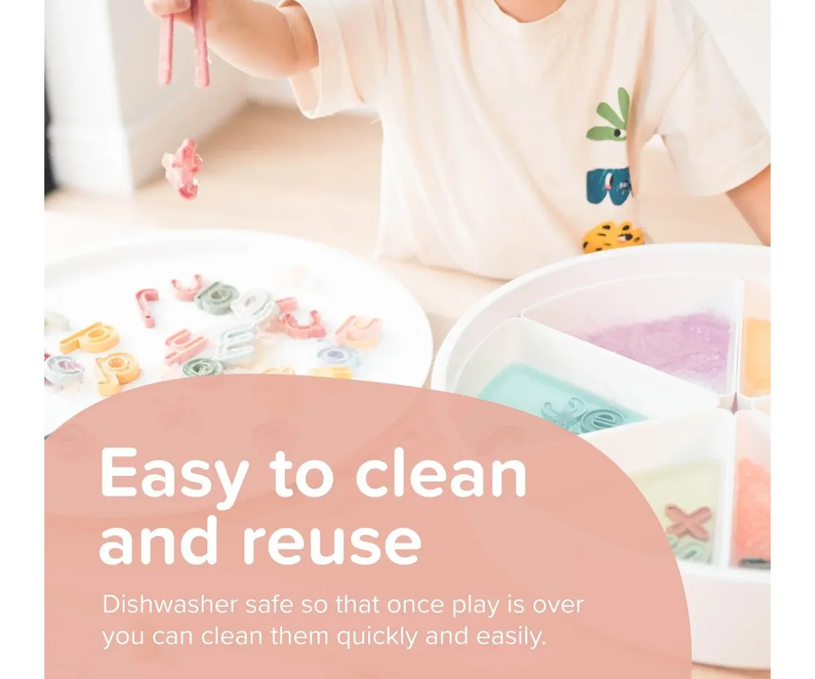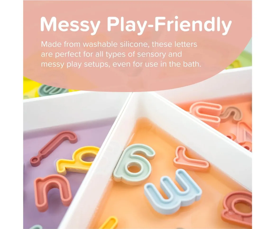 Son resistentes al agua, y perfectas para añadir a cualquier juego sensorial ya sea en una mesa o bandeja en la que podrás colocar las letras junto a más accesorios sensoriales.Gracias a su perfil empotrado podrás rellenarlas con plastilina y otros materiales, como agua o arroz.