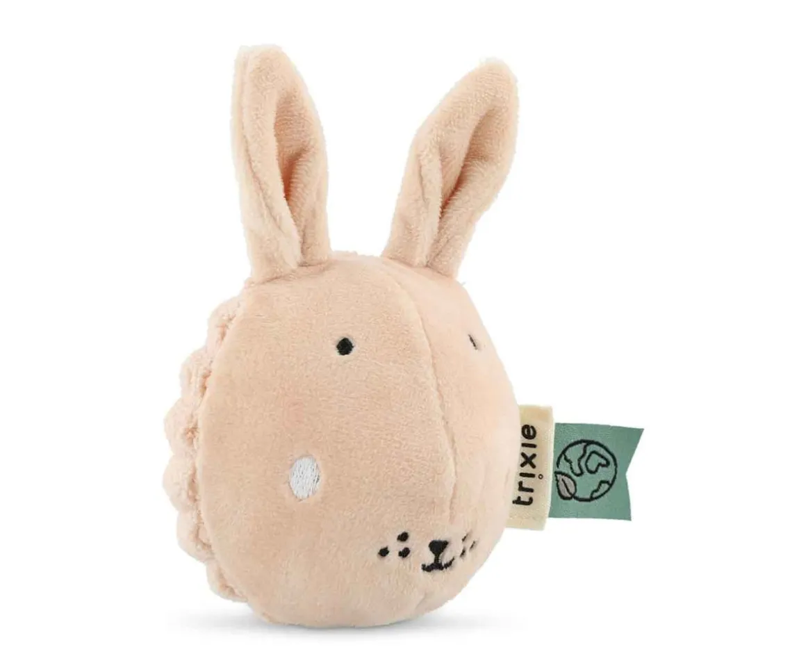 - Material: algodón orgánico, poliéster reciclado, papel arrugado, sonajero