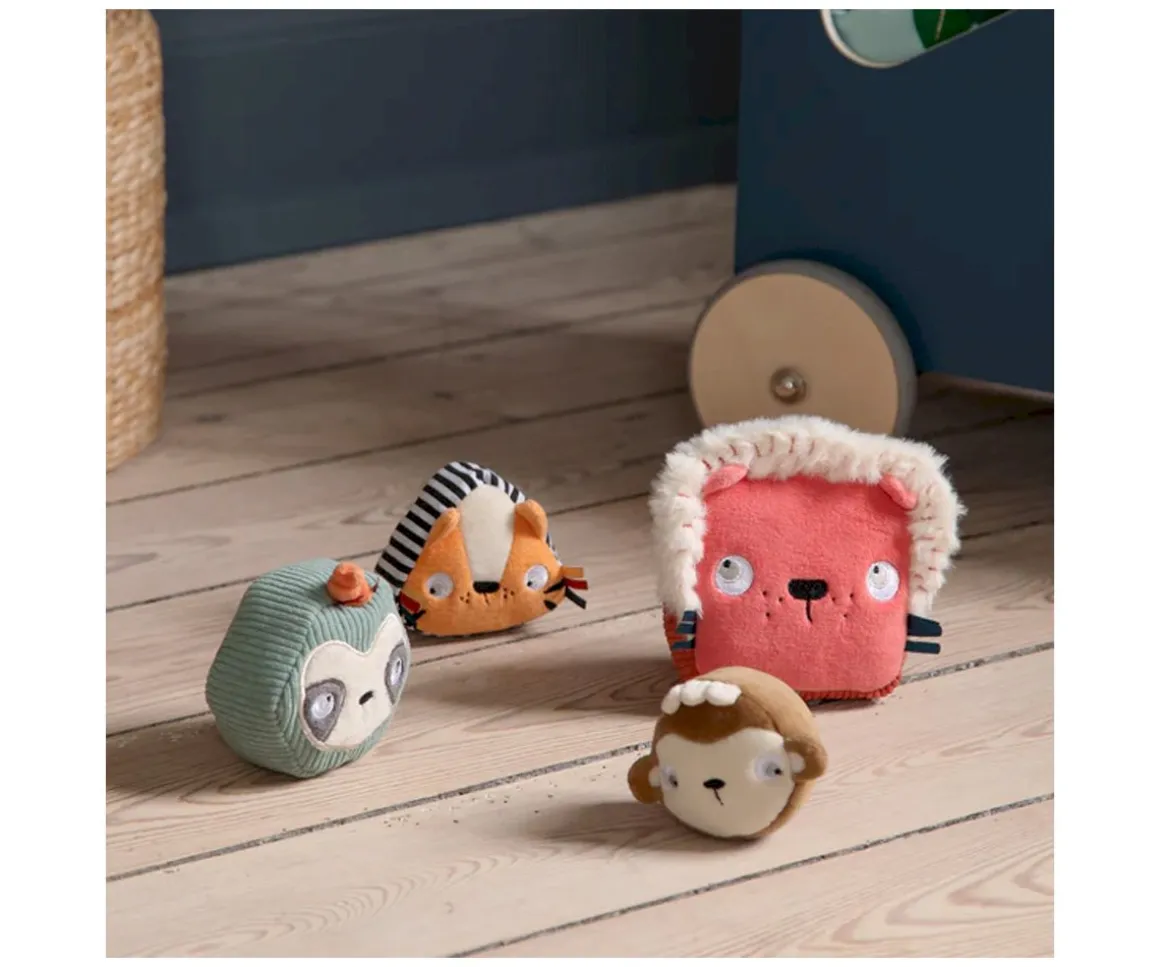Estos bloques tienen superficies texturizadas,formas geométricas, etiquetas y hasta un sonajero, para ofrecer a los peques una gran cantidad de estímulos sensoriales y visuales.
