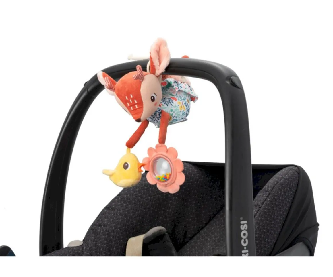 La bonita Stella de Lilliputiens, se convierte en un juguete de actividades donde estimulará los sentidos de los peques. Podrás colocarlo en el cochecito o silla y con su pajarito y sonajero será el pasatiempo preferido de los bebés.