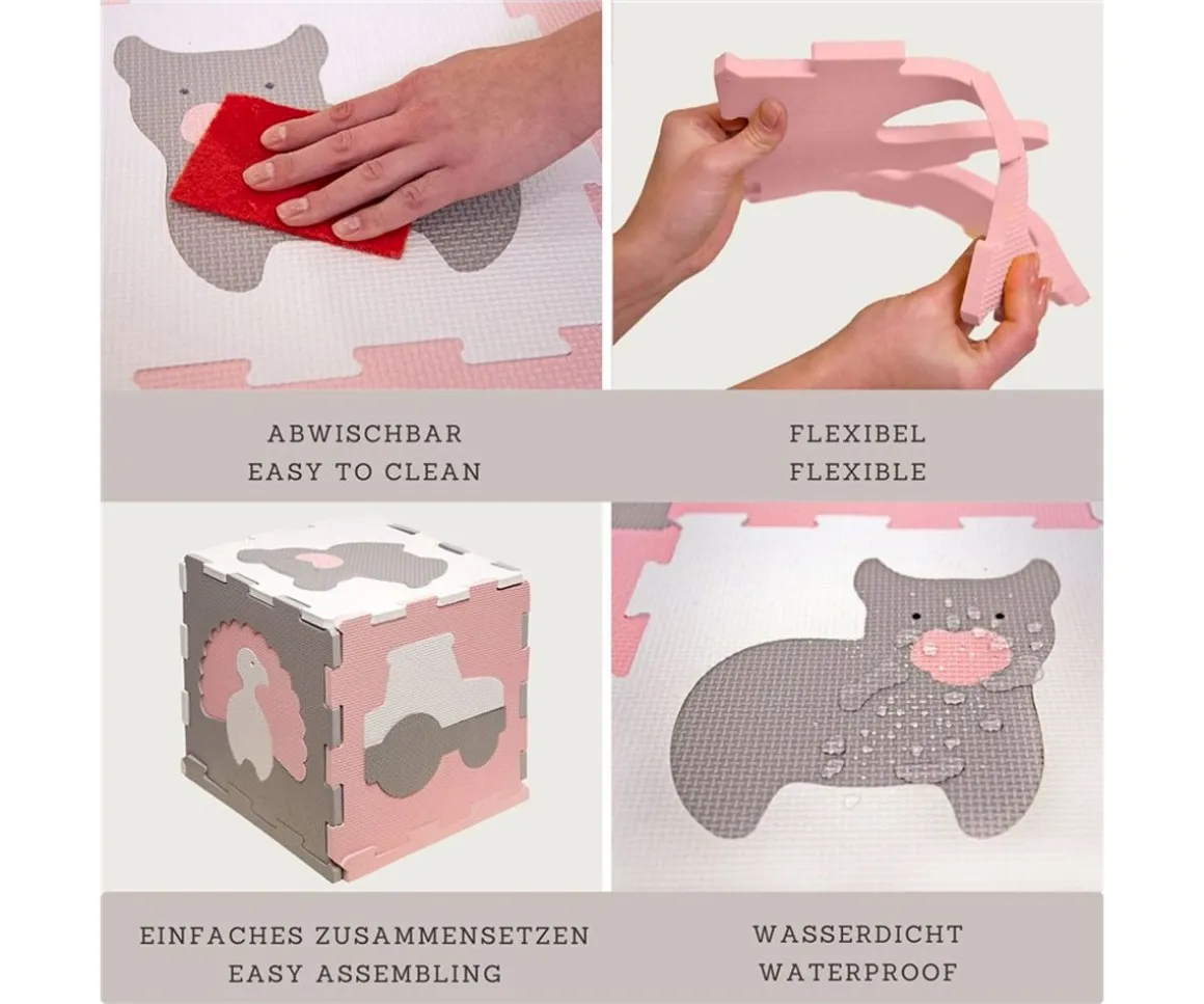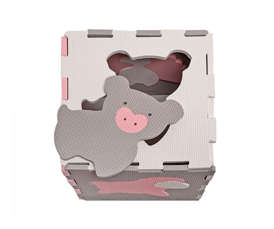 La alfombra de foam está formada por 12 cuadrados y 14 piezas de borde, perfecta para que los bebés puedan gatear, los peques jugar e incluso hacer ejercicio, ya que podrás usarla también al aire libre.