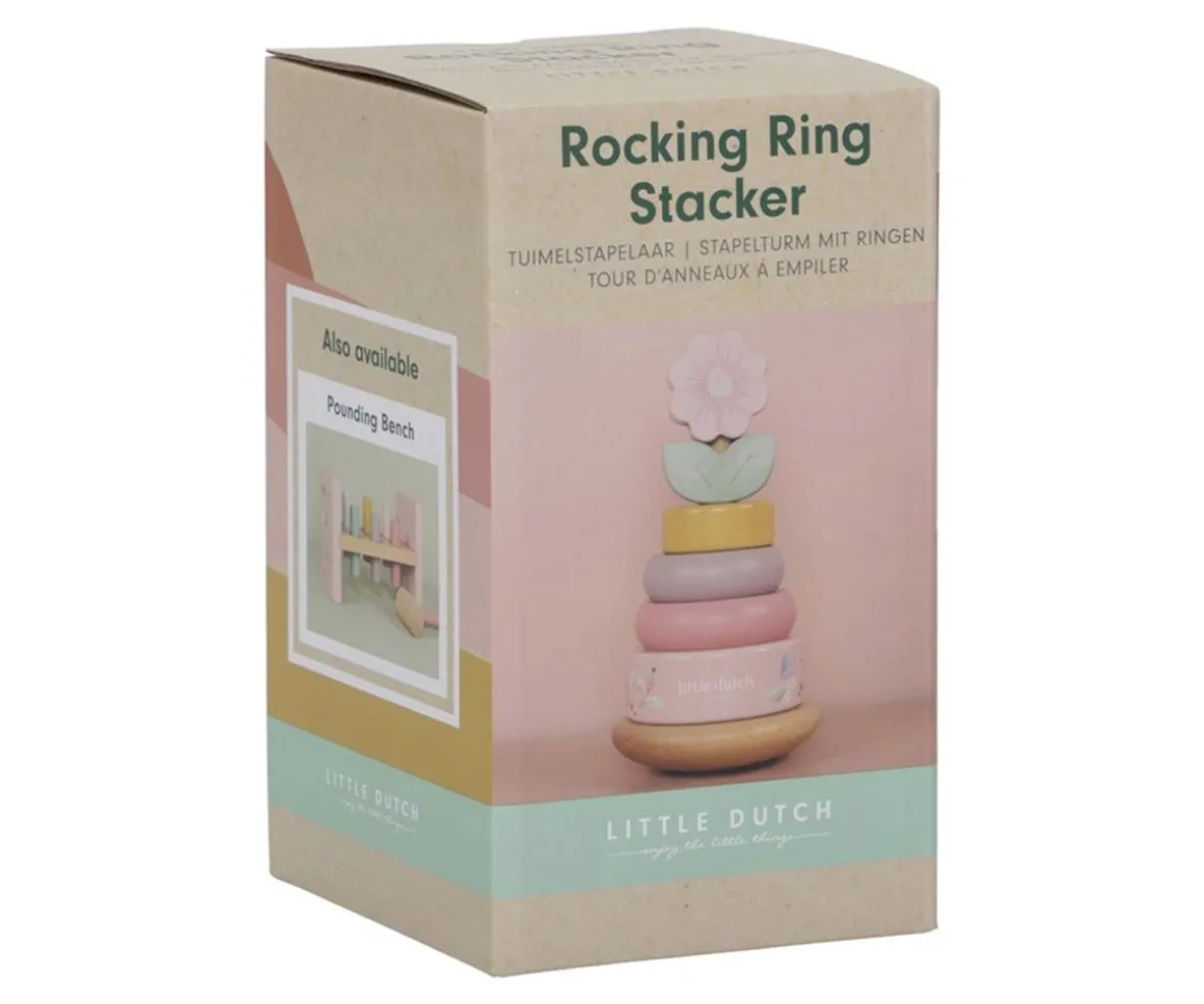 Apila los anillos en la secuencia correcta, apuntando a la flor para coronar la torre. Este encantador apilador de anillos balanceante de madera de la colección Fairy Garden de Little Dutch, está diseñado para desarrollar la coordinación mano-ojo de los niños a través del juego divertido y práctico.