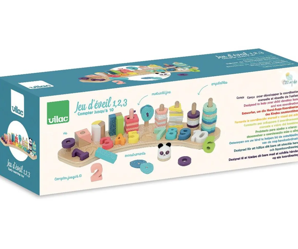 Perfecto juguete que favorece la autonomía del niño. Permite desarrollar su coordinación manual y visual. Observar y aprender a contar del 1 al 10, ordenar por colores y clasificar. Nociones que adquirirán de forma natural a través del juego.