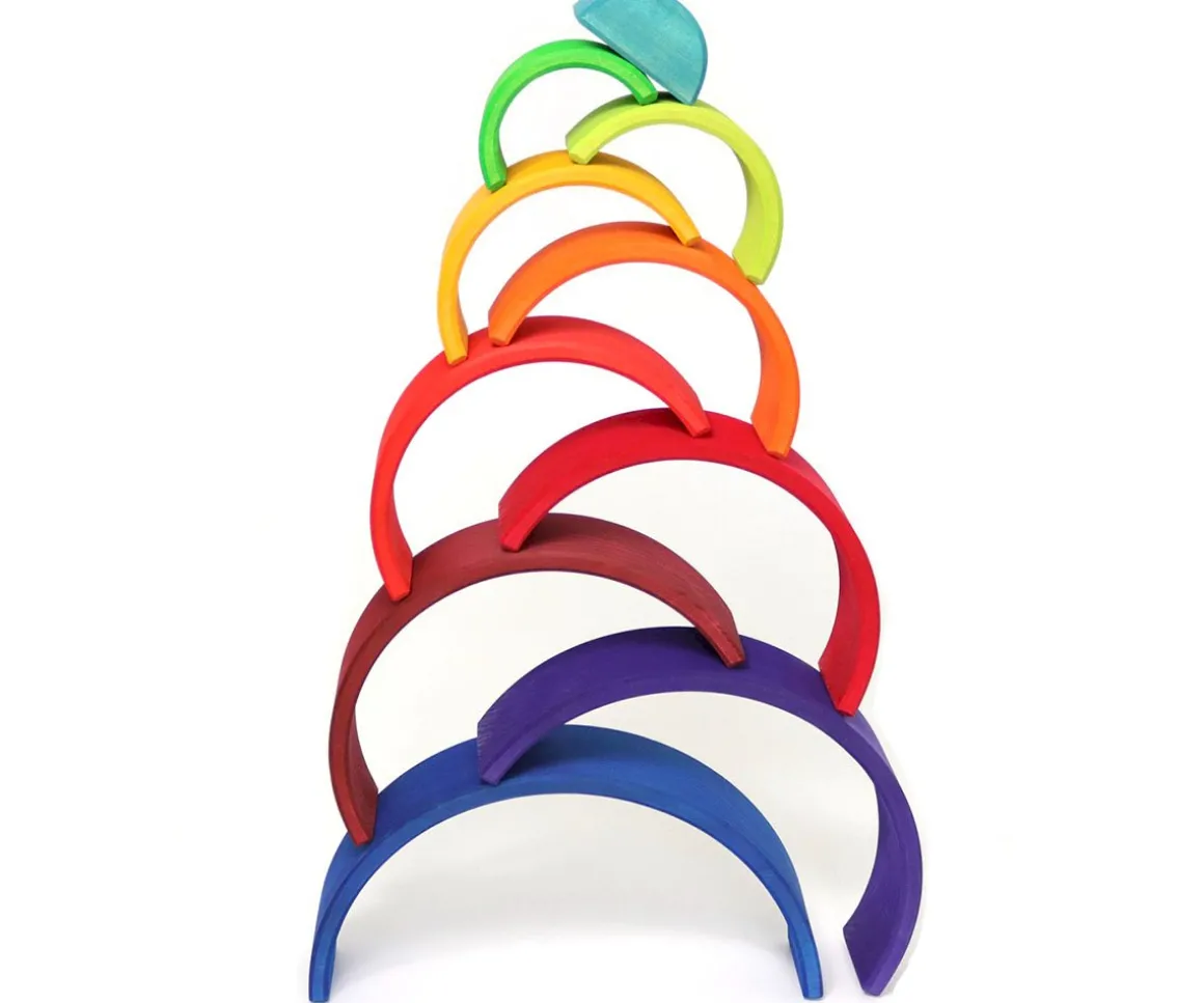 Arcoíris fabricado en madera, muy versátil e ideal para estimular la imaginación de los niños pequeños.