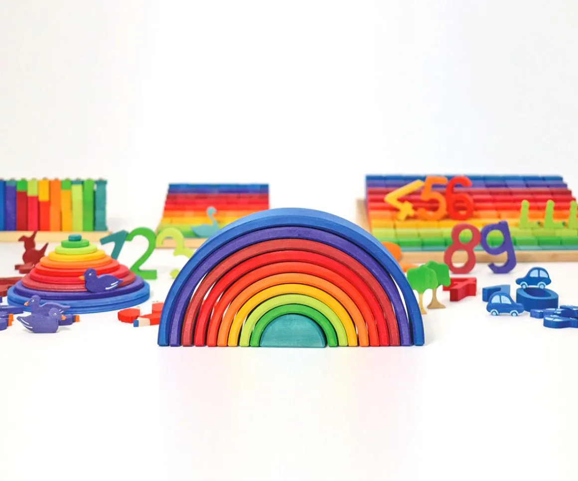 - Los arcoiris de Grimm’s, al estar fabricados con madera natural, pueden presentar vetas en su superficie