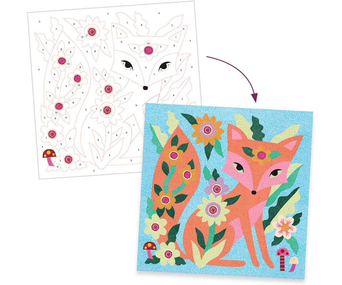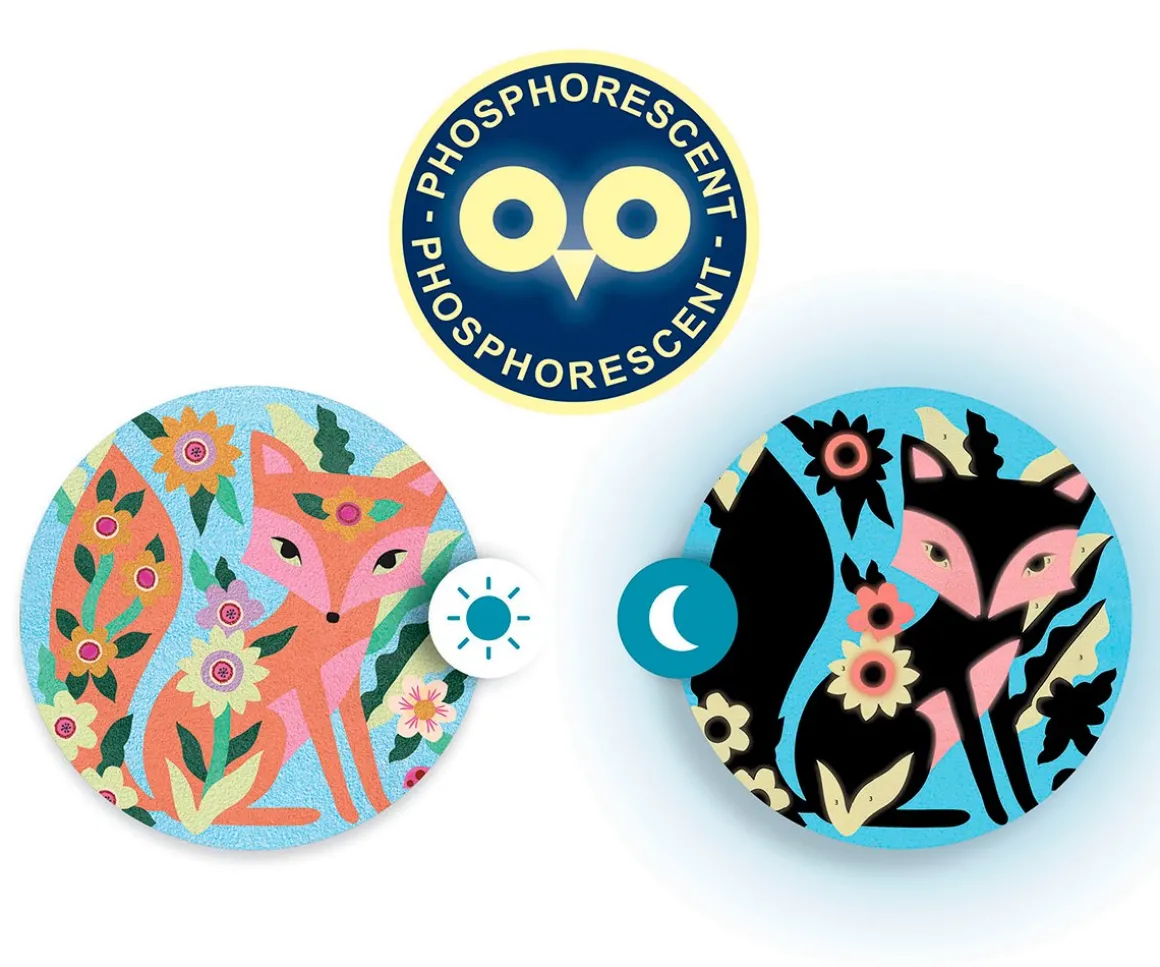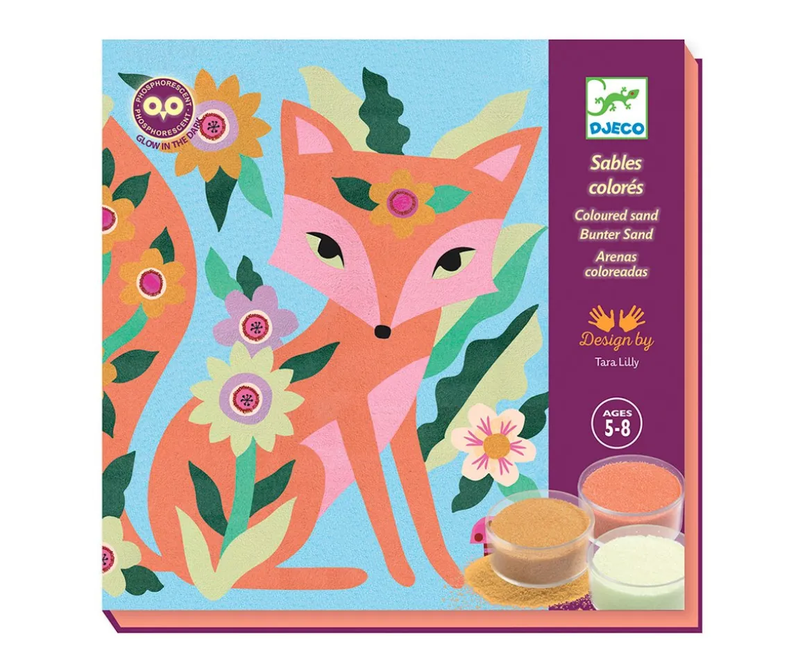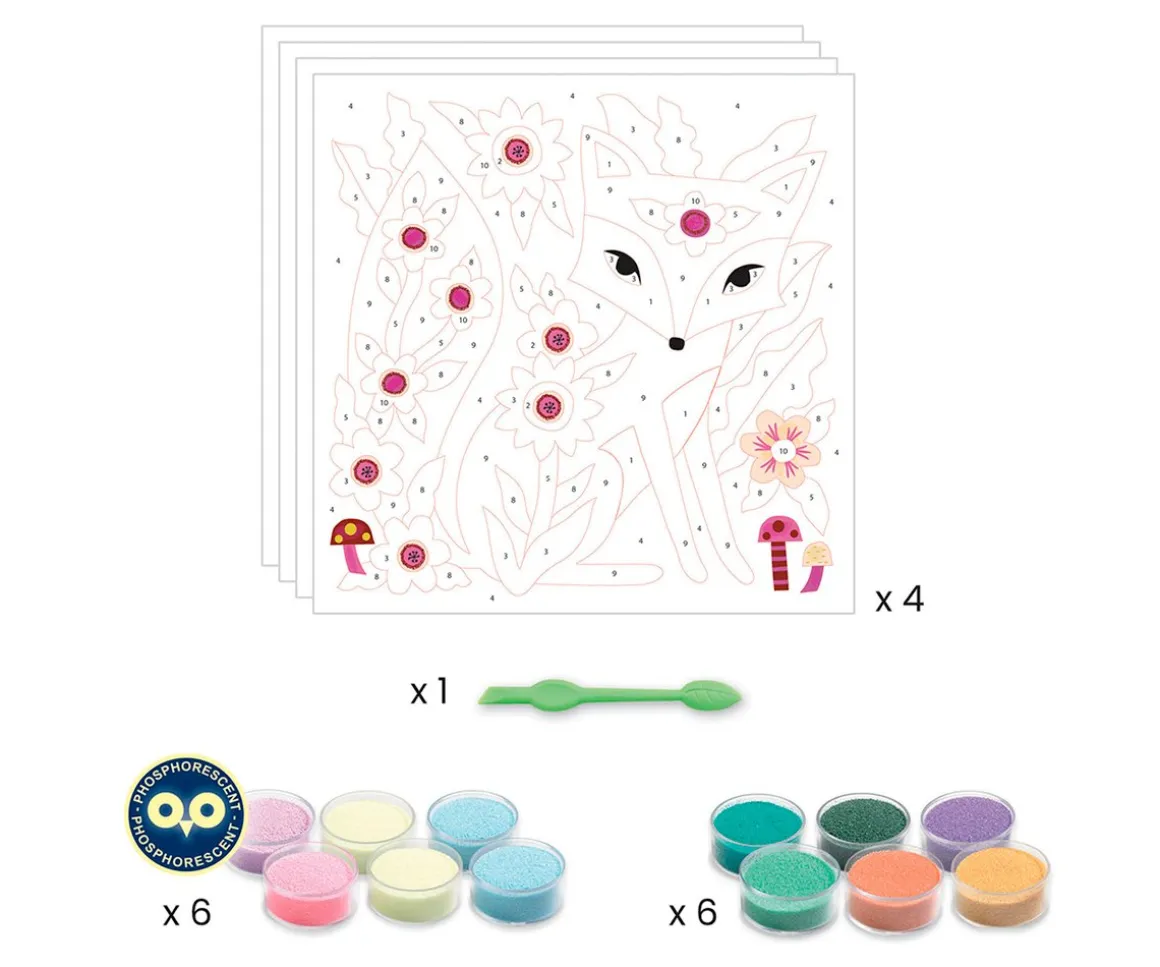 Este pasatiempo creativo y original de Djeco despertará la creatividad de tu pequeño mientras colorea con arena las láminas predibujadas de animales nocturnos. ¡No ensucia ya que la actividad se hace dentro de la caja y además las figuras se pueden ver en la oscuridad con la arena fluorescente!