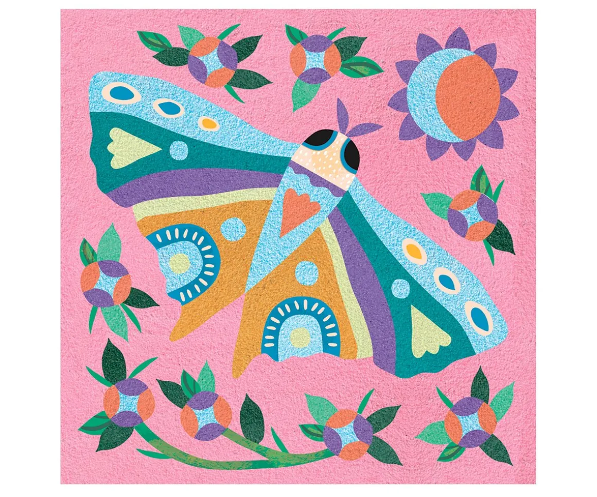 - Incluye 4 láminas, 12 frascos de arena, 6 normales y 6 fluorescentes, 1 herramienta de plástico