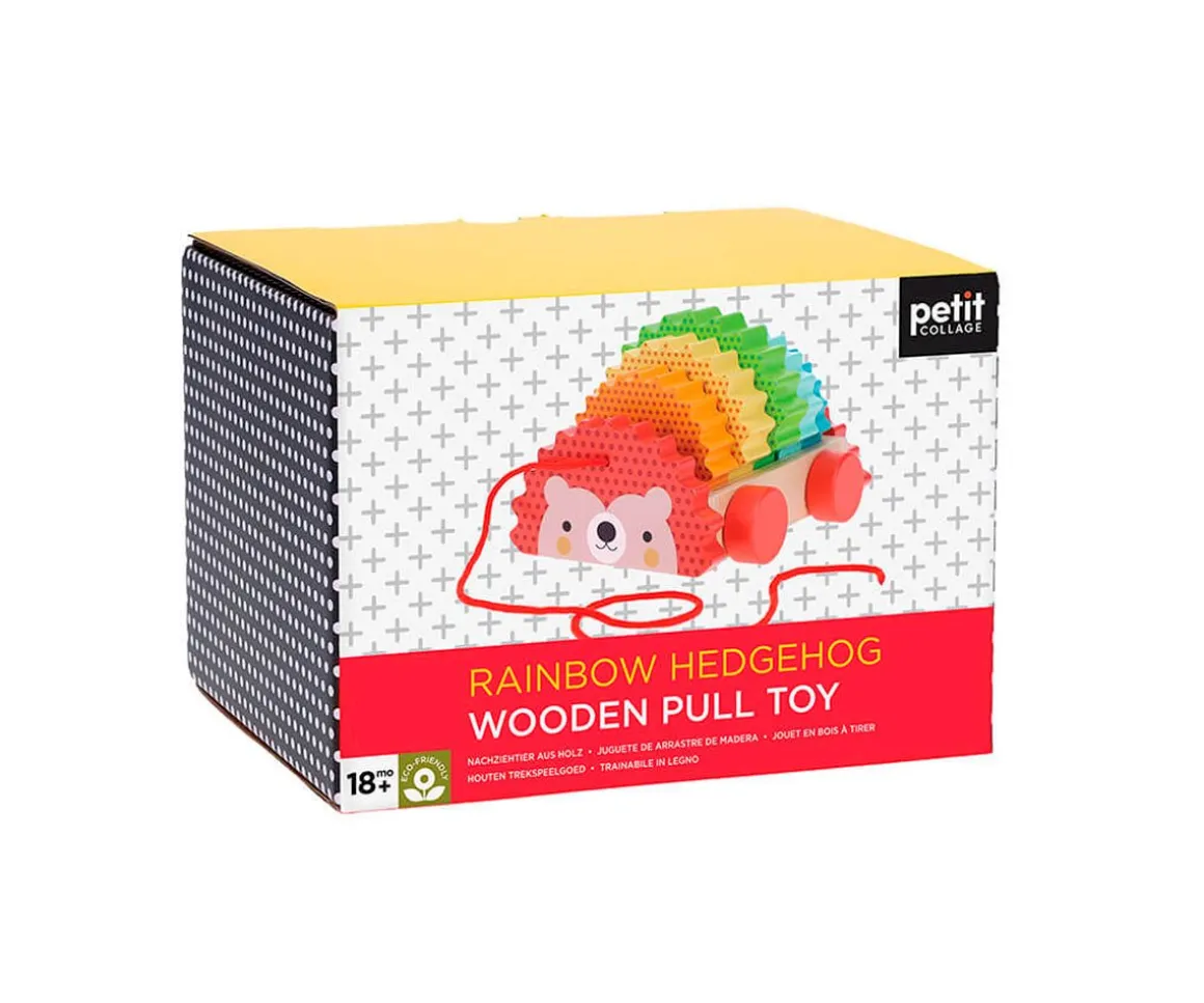 Este colorido erizo seguirá a tu peque a todas partes gracias a sus cuatro ruedecitas de madera y su cuerda de arrastre. Además podrán encajar y desencajar las púas del erizo que son de diferentes formas y colores, una manera muy divertida de que los peques practiquen la coordinación mano-ojo y la clasificación de los diferentes colores.