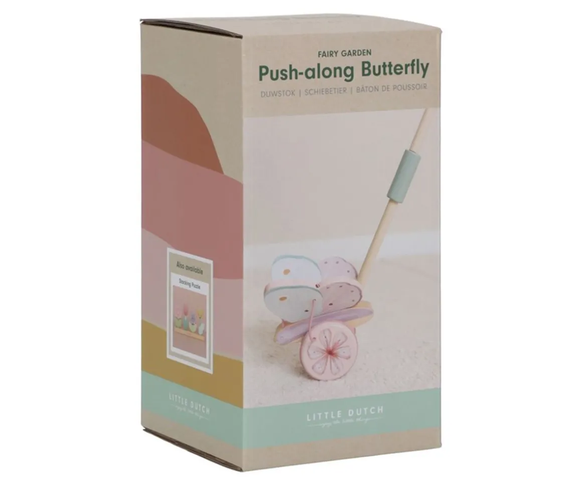 Los peques que comienzan a dar sus primeros pasos estarán encantados de arrastrar por todos los rincones de casa el original juguete de arrastre y sonajero Fairy Garden de Little Dutch.
