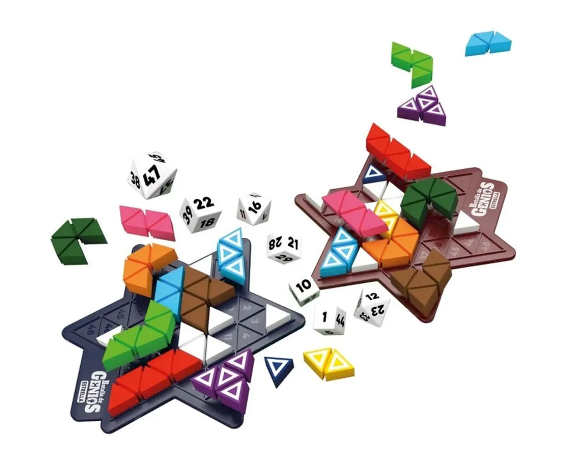- Incluye: 2 tableros de estrella, 2 sets de 11 piezas de colores, 2 sets de 7 bloqueadores, 7 dados