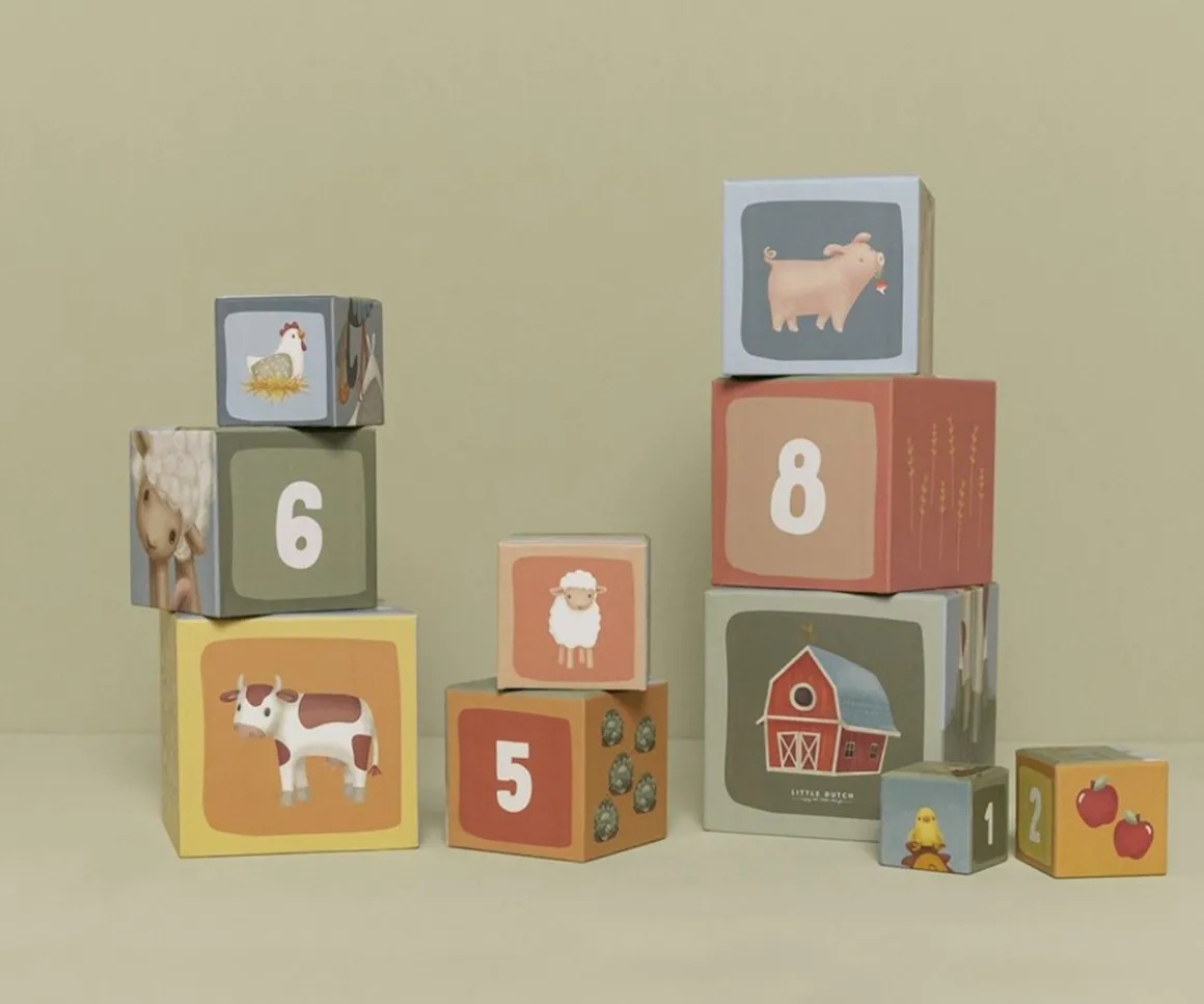 Decorados con detalles de la colección Little Farm, estos cubos de cartón son resistentes a los golpes.