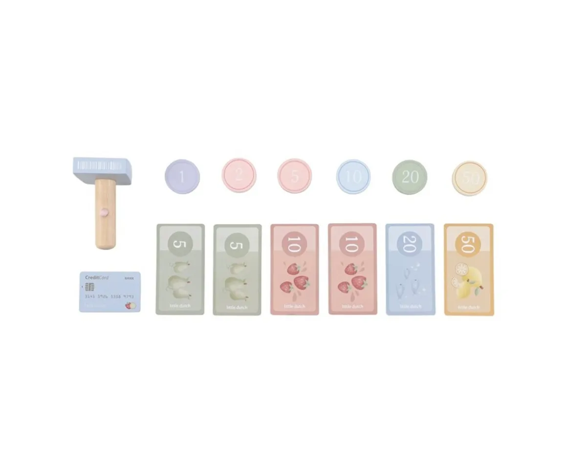 - Incluye: un escáner, un lector de tarjetas, botones y un cajón para monedas y billetes, también incluye una tarjeta bancaria