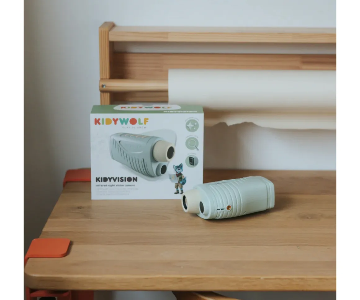 Esta cámara con visión nocturna por infrarrojos de KIDYWOLF permite observar el entorno incluso en completa oscuridad, alcanzando hasta 70 metros de distancia. Una experiencia única que despierta la curiosidad, la atención y el espíritu aventurero tanto de día como de noche.