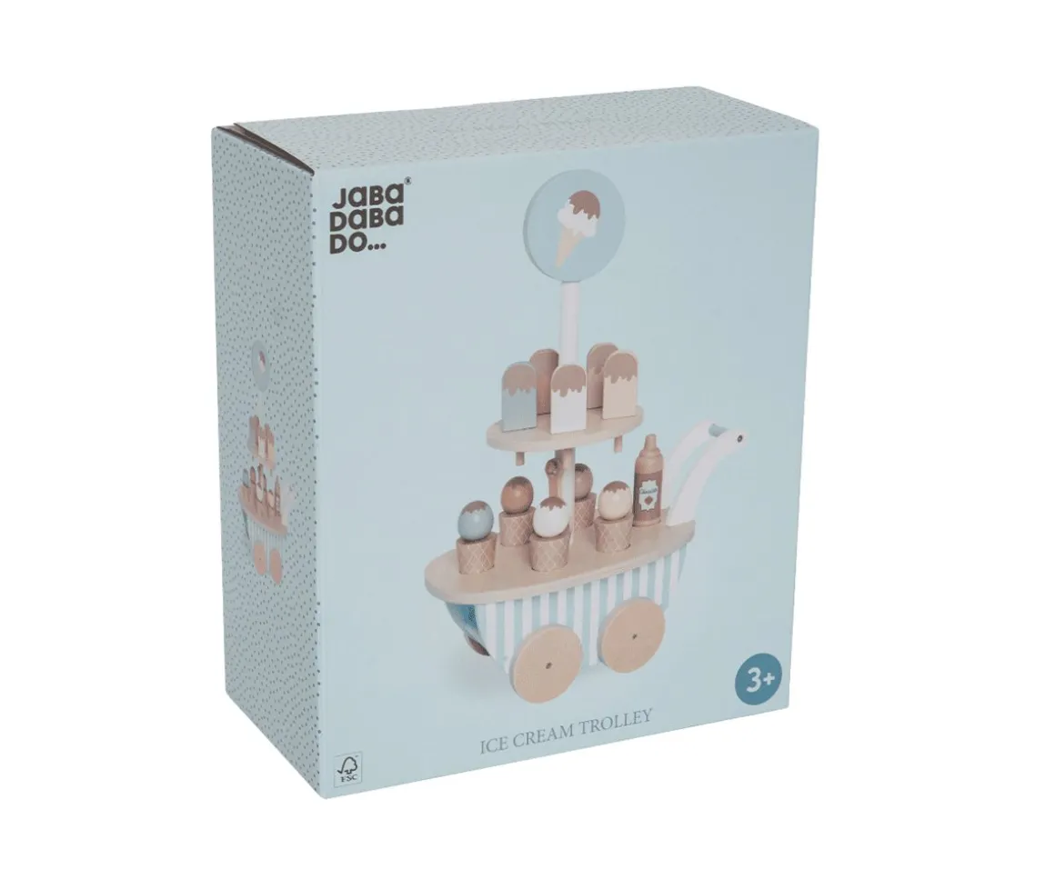- Incluye: carrito de helados, 5 cucuruchos con sus bolas de helado, 5 helados de polo 1 botella de sirope de chocolate