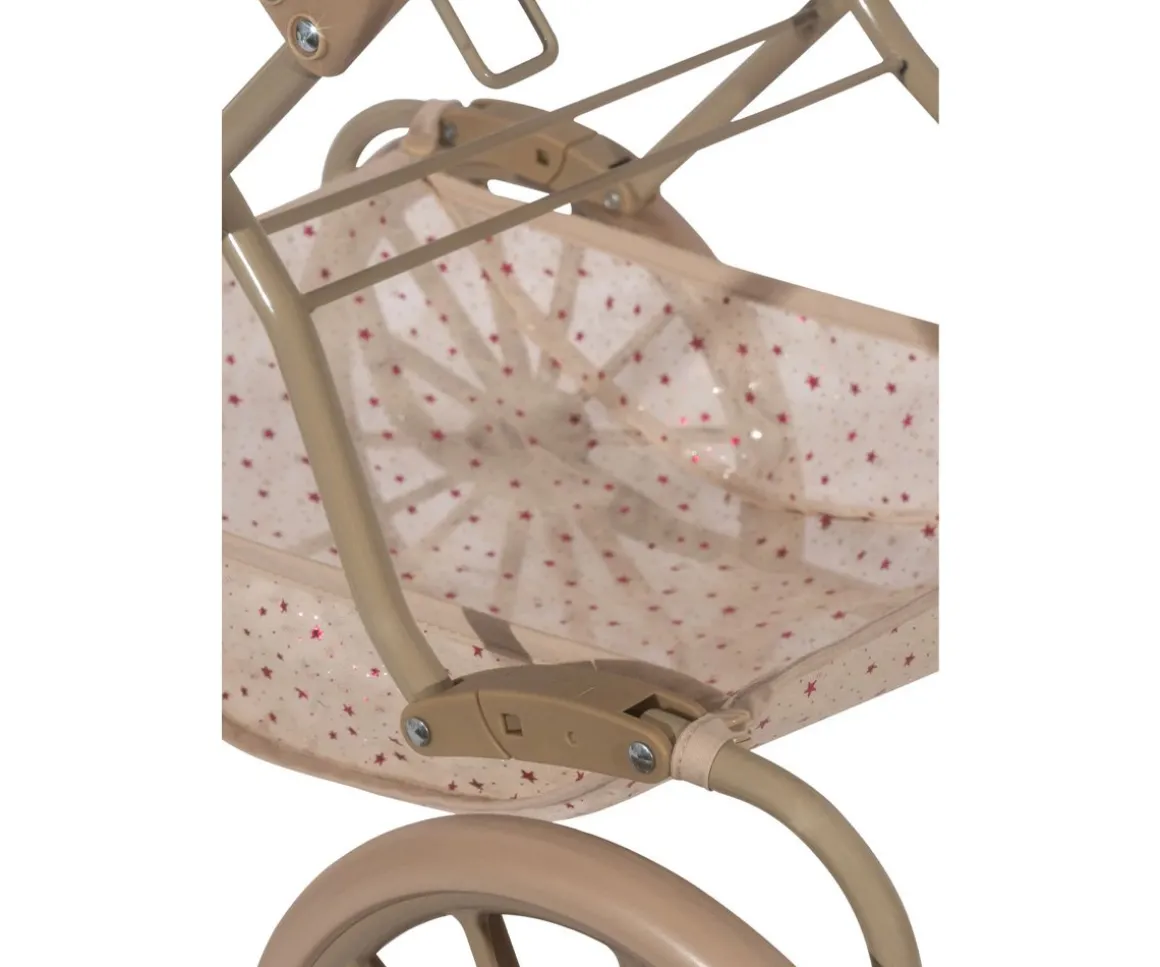 Este carrito de muñecas de Konges Slojd de estilo vintage con su cuatro ruedas grandes ofrece una mayor estabilidad a la hora de pasear a las muñecas.