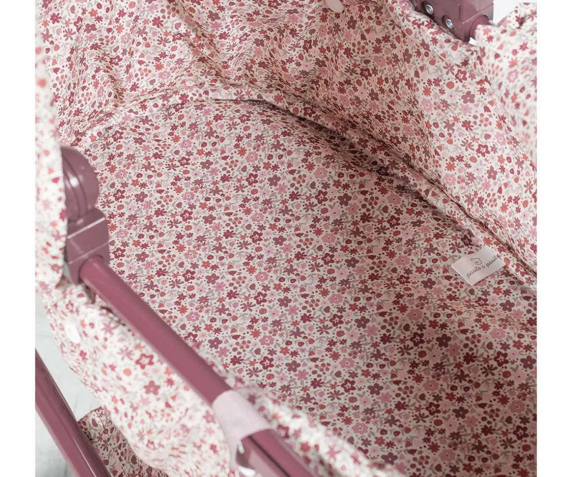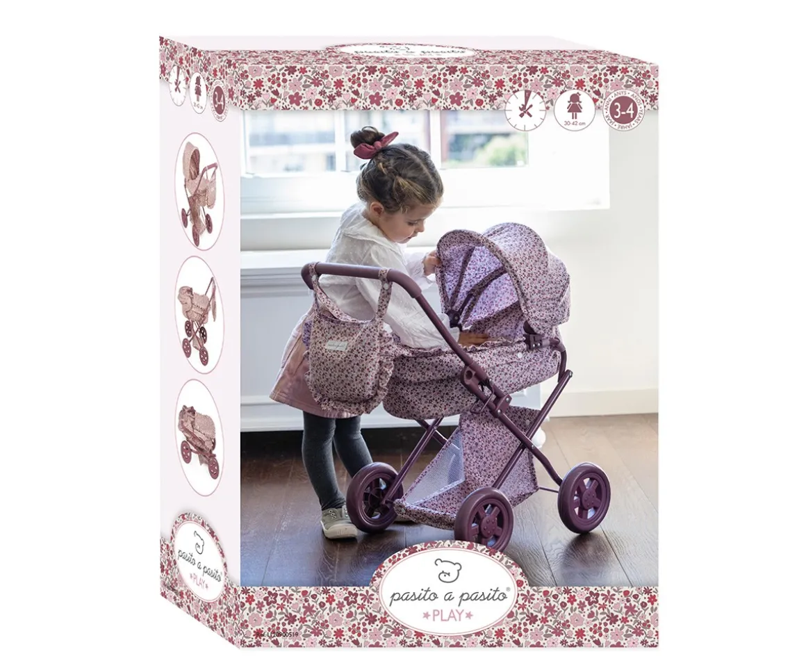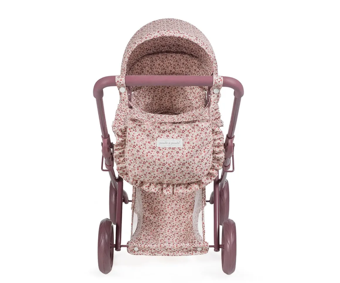 Pasea con tu primer cochecito para muñecas de Pasito a Pasito, perfecto para muñecas de 30 a 42 cm, este cochecito tiene el estampado de la colección Cherry Flores e incluye bolso y cesta en la parte inferior para llevar todos los accesorios de las muñecas. Es plegable, ocupa poco espacio y tiene un fácil montaje.