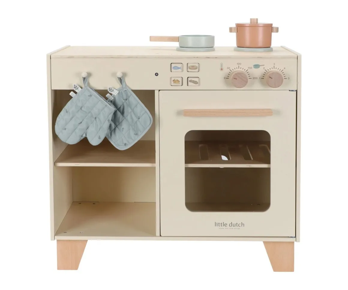 Con esta encantadora cocina de madera FSC de edición limitada de Little Dutch, los niños podrán preparar sus recetas favoritas como verdaderos cocineros. Diseñada con todo detalle y fabricada en madera sostenible, esta estación de cocina es ideal para fomentar el juego simbólico, la creatividad y la coordinación desde los 3 años.