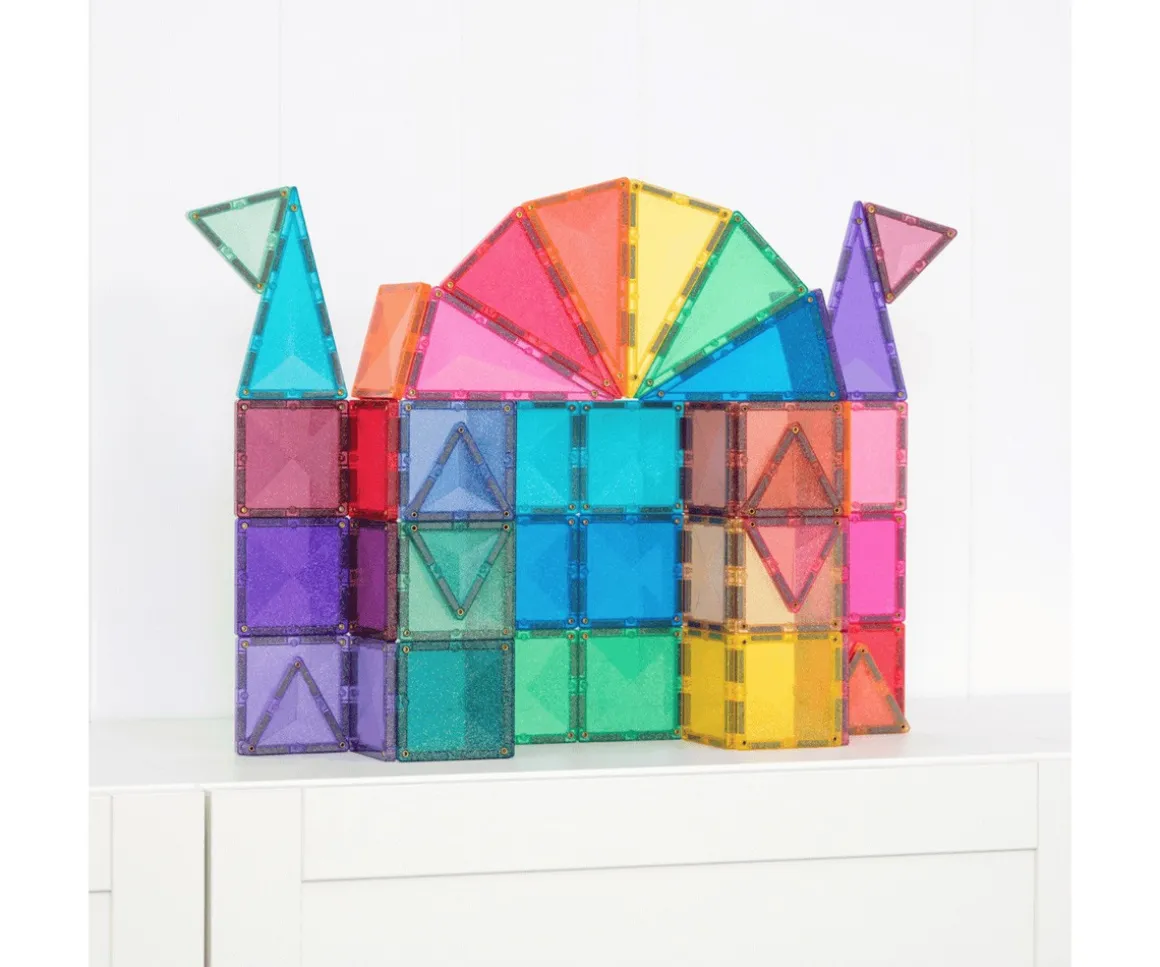 Un set de construcción magnético de Connetix que combina el encanto de los cuentos de hadas con el aprendizaje a través del juego. Con piezas translúcidas llenas de purpurina en tonos pastel y arcoíris vibrantes, este pack es perfecto para pequeños/as arquitectos con grandes sueños.